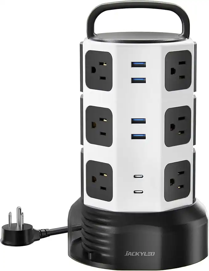 Power Strip Tower Surge Protector, JACKYLED 12 Outlets 6 USB (2 USB C) Charging Station, Extension Cord with Multiple Outlets, 1050J 1625W/13A Outlet Extender 6.5ft Extension Cord for Home Office — Price History & Tracker | DeserTracker