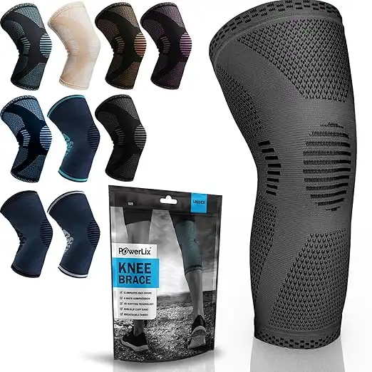 POWERLIX Knee Compression Sleeve - Best Knee Brace for Knee Pain for Men & Women – Knee Support for Running, Basketball, Volleyball, Weightlifting, Gym, Workout, Sports - (Gray L) — Price History & Tracker | DeserTracker