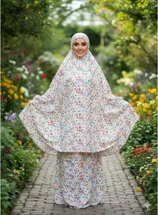 noon.comPrayer Dress For Women 2 Piece Big Outfit Full Cover Prayer Dress Soft Breathable Material Cotton, One Size white base with Multicolor design