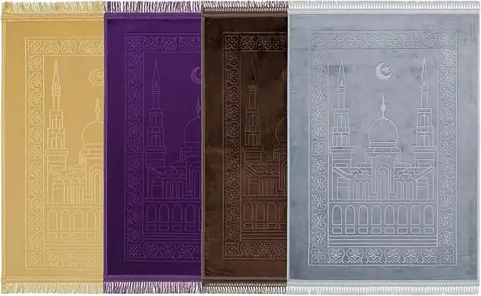Prayer Mat, Velvet Anti-Slip Prayer Rug with Embossed Design for Men & Women, Premium Eid Gift for Ramadan, 80 x 120 cm (4-Pack Multi-Color)