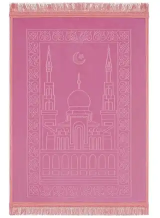 noon.comPremium Velvet Prayer Mat Pink 80x120cm Anti Slip Backing Large Islamic Janamaz Sajjadah for Women and Men Soft Comfortable Muslim Prayer Rug with Mosque Design Elegant Islamic Gift Mat for Daily Salah, Ramadan, Umrah and Hajj