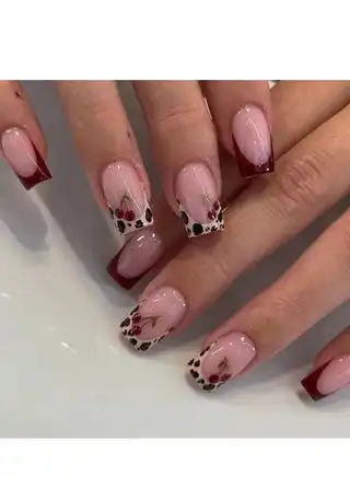 Press On False Nails,24pcs,Red Valentine's Day Nails,Pink Ombre Nails With Animal Print,Personalized Removable Nail Tips,Acrylic Nails With Glue Kit.