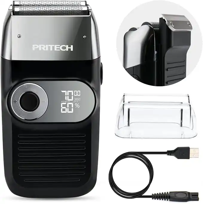 PRITECH Electric Foil and Bald Shavers 2 in 1 Double Shaver for Men Blade and Popup Beard Trimmer with Rechargeable 2 Head 3 Adjustable Speeds Men's Beard Shaver by Pritech