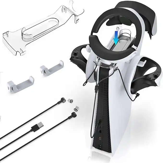 amazon.aePS VR2 Accessories, 4 in 1 PS VR2 Controllers Charger Dock Kit on PS5 Console, PS VR2 Sense Controllers Charging Accessories Station, VR Headset Controllers Holder Organizer and Fast Charging Cord