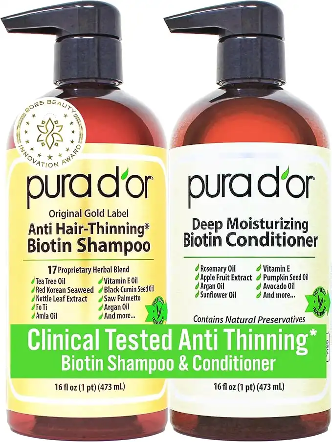 Pura D'or Anti-Thinning Biotin Shampoo and Conditioner, CLINICALLY TESTED Proven Results, DHT Blocker Thickening Products For Women & Men, Color Treated Hair, Original Gold Label Hair Care Set 16oz x2