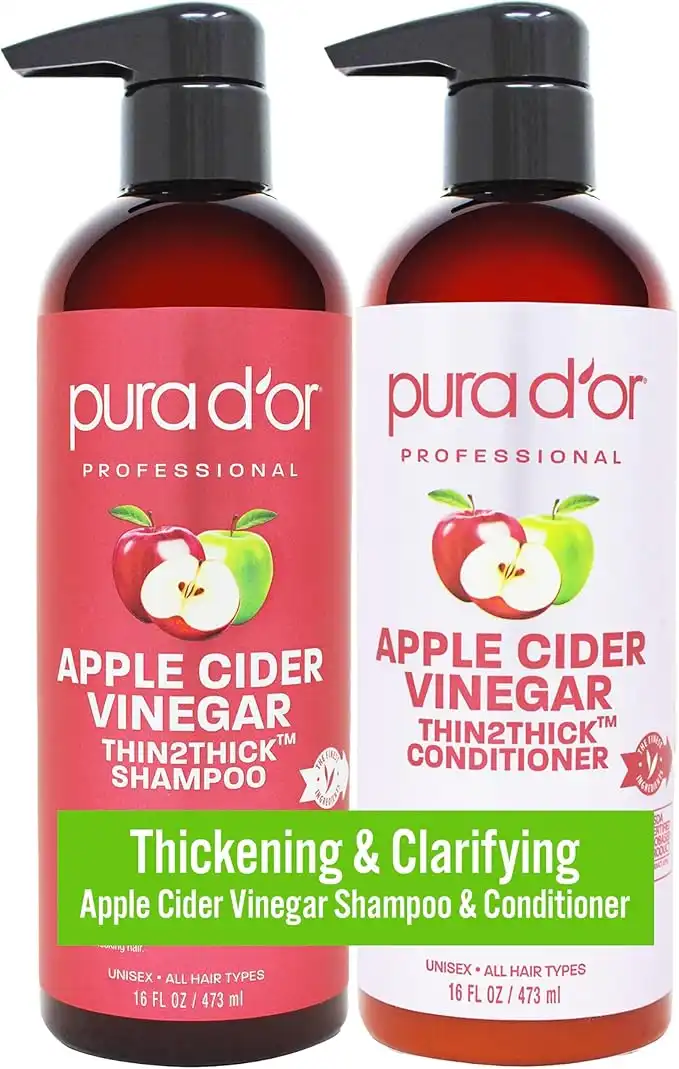 amazon.aePURA D'OR Apple Cider Vinegar Thin2Thick Set Shampoo Conditioner for Regrowth, Hair Loss, Clarifying, Detox (2 x 16oz) Biotin, Keratin, Caffeine, Castor Oil, All Hair Type, Men/Women, Packaging varies
