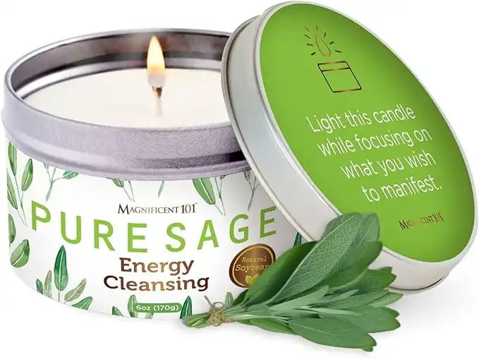 PURE SAGE MAGNIFICENT101 White Smudge Candle for Home Energy Cleansing, Banishes Negative Energy I Purification and Chakra Healing - Natural Soy Wax Tin Candle for Aromatherapy ( White )
