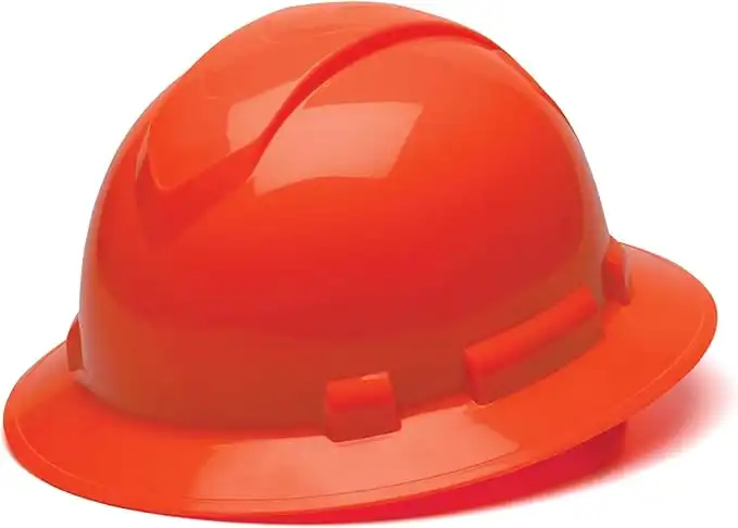 Pyramex Ridgeline Full Brim Hard Hat, 4-Point Ratchet Suspension, Hi-Vis Orange