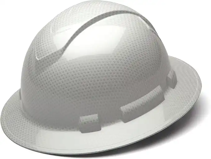 amazon.aePyramex Ridgeline Full Brim Hard Hat, 4-Point Ratchet Suspension, Shiny White Graphite Pattern