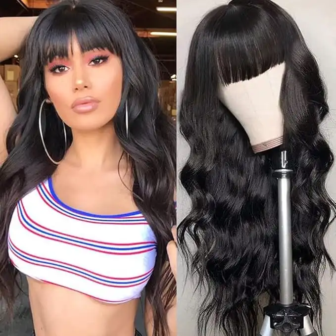 QD-Tizer Black Wig Natural Wavy Hair Wigs with Bangs, Heat Resistant Synthetic Long Black Wigs for Women — Price History & Tracker | DeserTracker