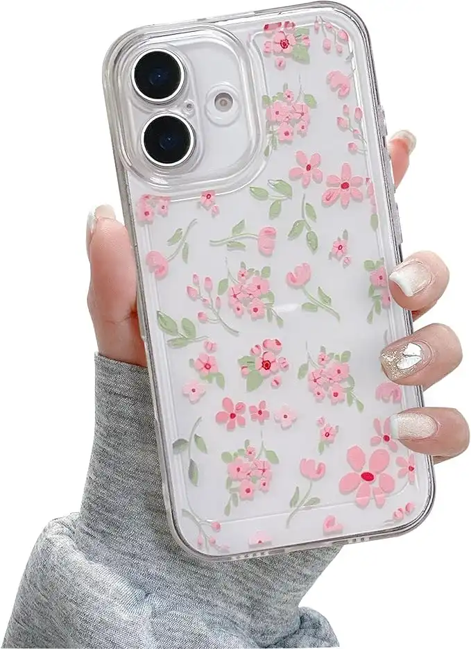 QLTYPRI for iPhone 16 Plus Case, Cute Pink Floral Flower Pattern Aesthetic Phone Case, Raised Camera Protection Soft Slim TPU Shockproof Protective Phone Cover for Girls Women - Clear — Price History & Tracker | DeserTracker