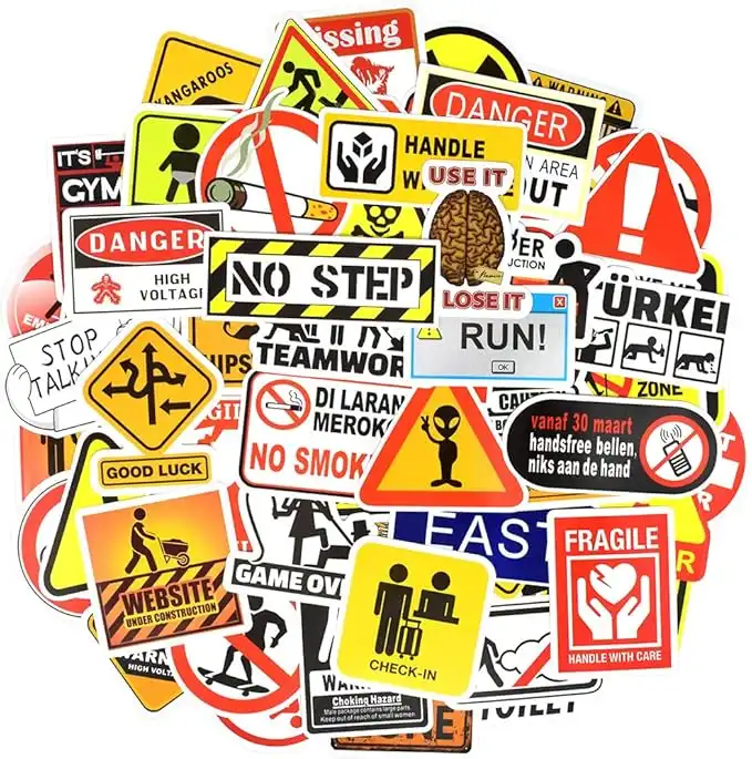 QTL Waterproof Vinyl Stickers for Laptop Water Bottle Car Decals for Adults (100 Pcs Warning Sign Style)