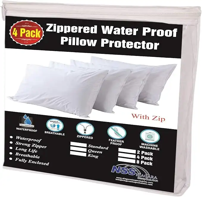 Queen 4 Pack Waterproof Pillow Protectors 20x30 Inches Extra Soft Non Noisy Smooth Zipper Premium Encasement Covers Quiet Cases Set White 100% Liquid Protection 100Gsm Super Soft