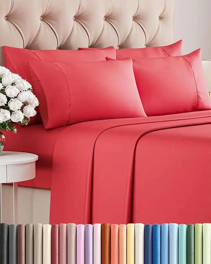 amazon.aeQueen 6 Piece Sheet Set - Comfy Breathable & Cooling - Ultra Soft Hotel Luxury Bedding Set with 8-16 Inch Deep Pockets - 1 Flat & 1 Fitted Sheet & 4 Pillowcases - Cozy, Wrinkle Free & Easy Care - Red