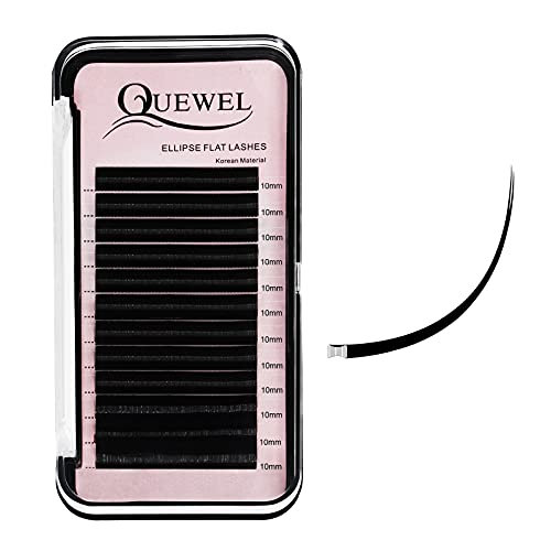 QUEWEL (10mm, Upgrade 0.20-C) - Ellipse Flat Eylash Extensions 0.20mm Curl C 10mm Matte Black 0.15/0.20mm Curl C CC D DD Mix-8-15mm Single Length 8-18mm (0.20 C 10mm)
