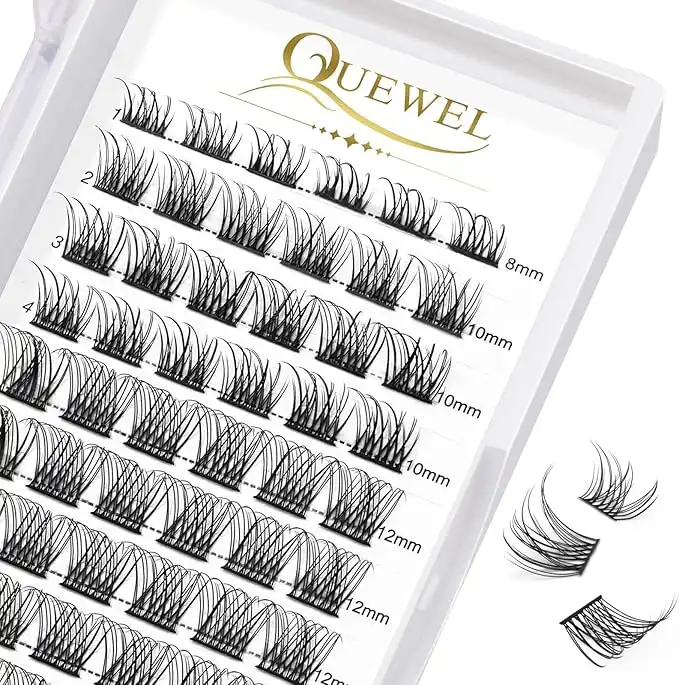 amazon.aeQUEWEL Cluster Lashes 72 Pcs Wide Stem Individual Lashes C/D Curl 8-16mm Length DIY Eyelash Extension False Eyelashes Natural&Mega Styles Soft for Personal Makeup Use at Home (Natural-D-MIX8-16)