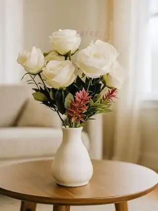 ® Artificial Flowers Bunch for Decoration Rose Flowers, Ideal for vase, Home, Office Decor, Gifts, Craft, Artificial Plants, Without vase, Combo, 1 Piece, White, 35 cm Height