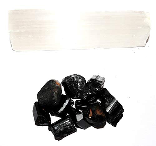 R.R. SHEIKH GEMS Natural Healing Crystal Rough Gemstones Combo: Black Tourmaline and Selenite Stick Stones