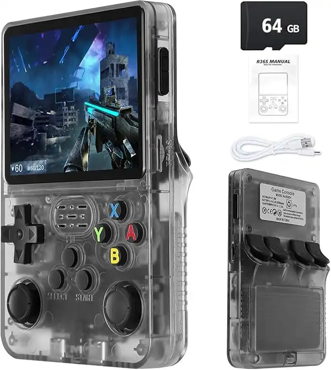 R36S Retro Handheld Game Console with 3.5" IPS Display, 64/128GB and 21,000+ Classic Games, Open Source Linux System, Screen Portable Pocket Video Player (Black-64G)