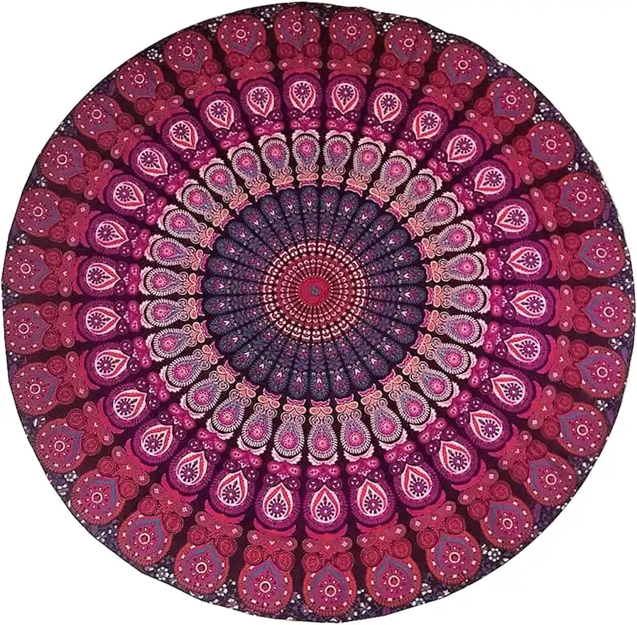 raajsee Purple Round Beach Tapestry Hippie/Boho Beach Blanket Mandala/Indian Cotton Throw - Round Tablecloth/Home Decor/Indie Rug Yoga Mat Meditation Picnic Rugs 127 CM / 50 INCHE Circle