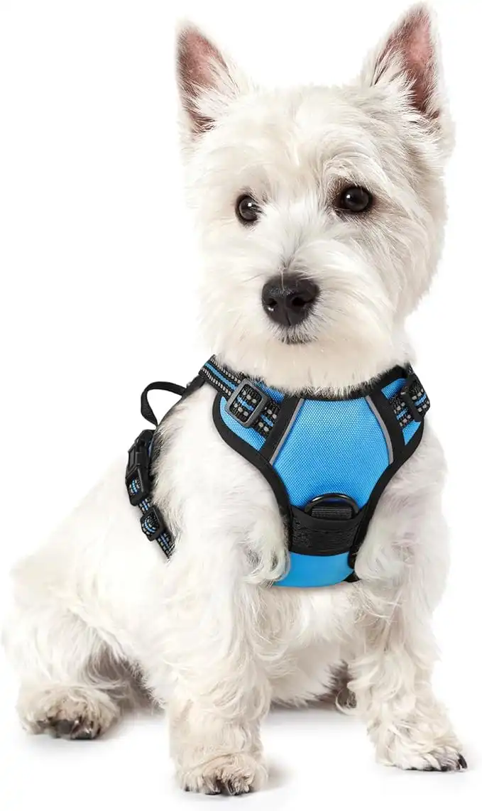 amazon.aerabbitgoo Dog Harness Small Dog No Pull Pet Harness with 2 Leash Clips, Adjustable Soft Padded Pet Vest Harness, Reflective No-Choke with Easy Control Handle for Training or Walking, Baby Blue, XS