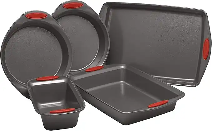 Rachael Ray Nonstick Bakeware with Grips includes Nonstick Bread Pan, Baking Pan, Cake Pans and Cookie Sheet/Baking Sheet - 5 Piece, Gray with Red Grips — Price History & Tracker | DeserTracker