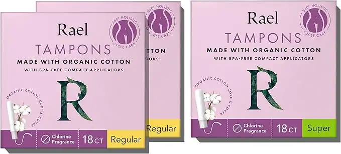 Rael Tampons, Compact Applicator Tampon Made with Organic Cotton - Tampons Multipack, Regular and Super Absorbency, BPA-Free, Chlorine Free, Leak Locker Technology (54 Count, Bundle) — Price History & Tracker | DeserTracker