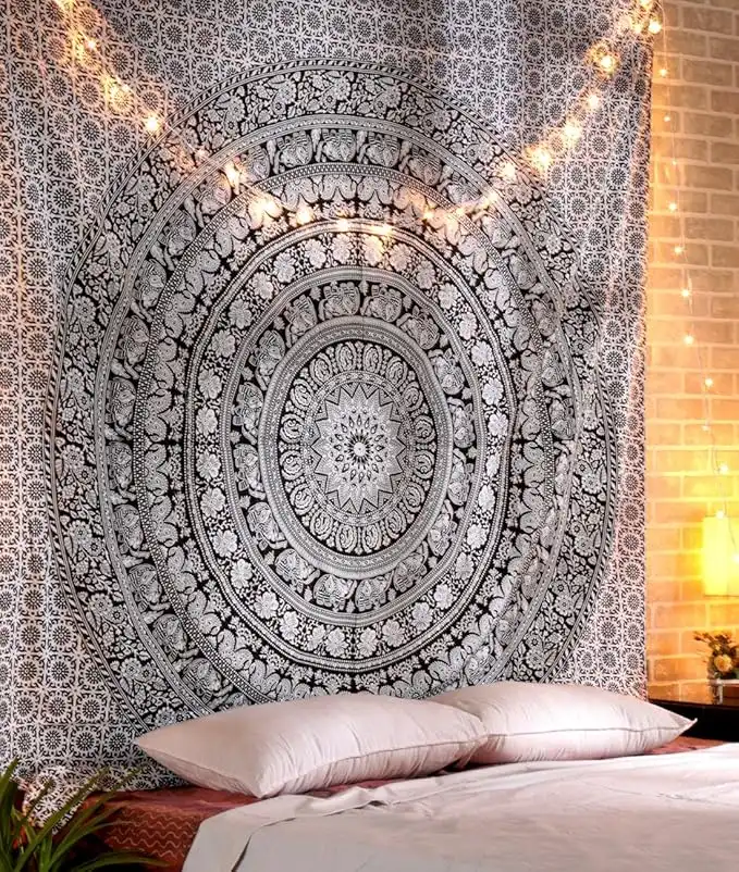 RAJRANG BRINGING RAJASTHAN TO YOU Mandala Tapestry for Bedroom - 213 x 228 cm Cotton Hippie Black and White Large Wall Hanging Art Boho Elephant Queen Tapestries Decor — Price History & Tracker | DeserTracker