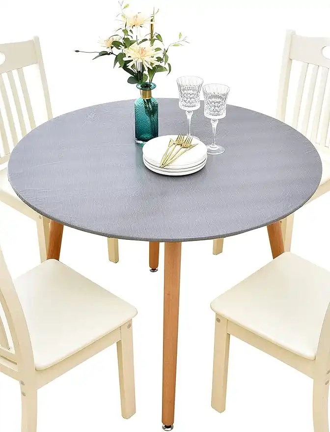 amazon.aeRally Home Goods Indoor Outdoor Patio Round Fitted Vinyl Tablecloth, Flannel Backing, Elastic Edge, Waterproof Wipeable Plastic Cover in Solid Gray Color for 5-Seat Table of 36-42’’ Diameter
