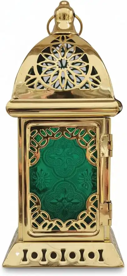 Ramadan Gold Steel & Green Glass Hanging Fanoos Lantern - 10" Battery-Operated Vintage LED Lamp for Eid Mubarak, Home Table Decor, and Ramadan Kareem Celebrations — Price History & Tracker | DeserTracker