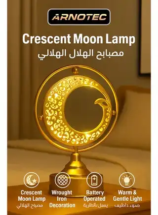 Ramadan Moon & Star LED Decorative Table Lamp, Cordless Warm Light Bedside Night Light for Bedroom, Living Room, Nursery & Home Decor