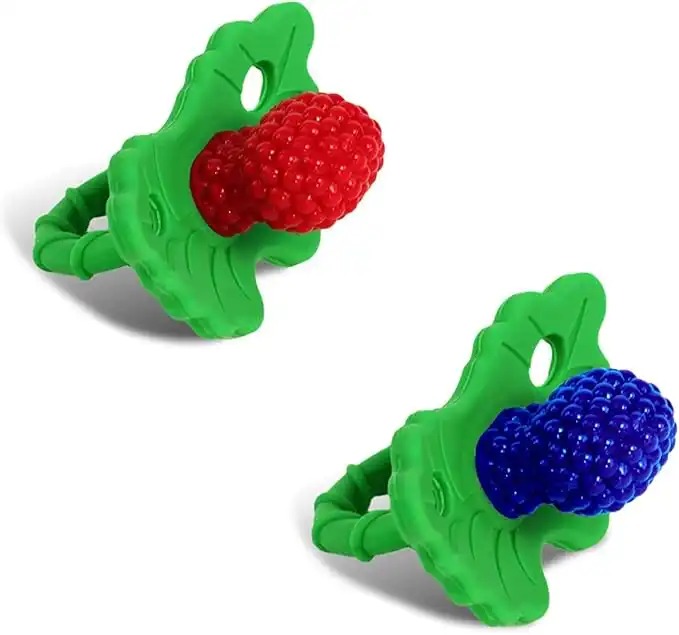 amazon.aeRaZbaby RaZberry Silicone Baby Teether Toy (2-Pack) - Berrybumps Soothe Babies Sore Gums - Infant Teething Toy - Hands Free Design - BPA Free - Easy-to-Hold Design - Teething Relief Pacifier Red&Blue