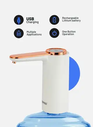 noon.comRechargeable Water Pump For Water Gallon, Portable And Light-Weight With Easy One Touch Mechanism And USB Charging, Can Be Used At Home And Office White/Rose Gold