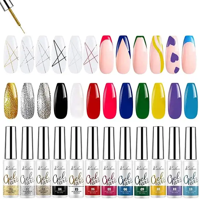 Rechoo Painted Gel Nail Art Polish Set, Liner Nail Polish Gel Classic Colors Painting Drawing UV Light LED Soak Off Nail Art Design & Nail Salon DIY Manicure Kit (12 Neon Colors) — Price History & Tracker | DeserTracker
