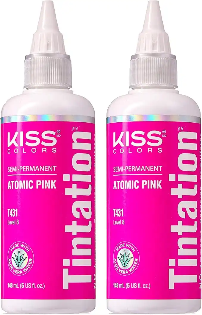 Red by Kiss Tintation Semi-Permanent Hair Color, Aloe Vera Water Based, Argan Oil, Olive Oil, Collagen & Keratin, Long-Lasting Color Dye (Atomic Pink, 2 Pk, 5 Fl Oz)