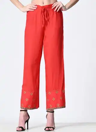 Red Woven Trousers for Women