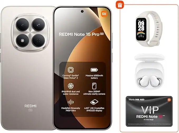 REDMI Note 15 Pro 5G Titanium Color 12GB RAM 256GB ROM + Xiaomi smart band 9 active + Redmi buds 6 Play - Global Version