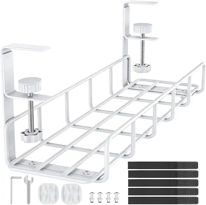 amazon.aeREFLYING Under Desk Cable Management Tray, 15.7'' White No Drill Steel Desk Cable Organizers, Wire Management Tray Cable Management Rack, Desk Cable Tray with Wire Organizer White(1pack