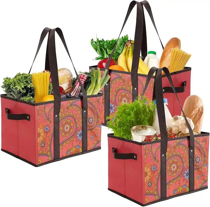 Reusable Grocery Bags Set Durable Heavy Duty Tote Bag Collapsible Grocery Shopping Box Bag with Reinforced Bottom