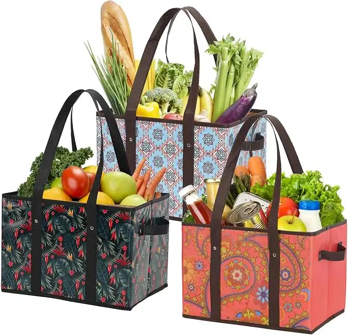 Reusable Grocery Bags Set Durable Heavy Duty Tote Bag Collapsible Grocery Shopping Box Bag with Reinforced Bottom