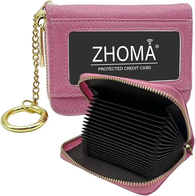 RFID Blocking Genuine Leather Credit Card Case Holder Security Travel Wallet With Removable Keychain ID Window (NEW) - Pink 02 — Price History & Tracker | DeserTracker