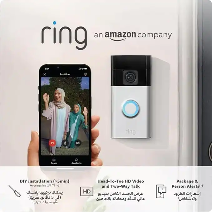 amazon.aeBattery Video Doorbell Plus by Amazon | Wireless Video Doorbell Camera with 1536p HD Video, Head-To-Toe View, Colour Night Vision, Wifi, DIY | 30-day free Ring Subscription trial