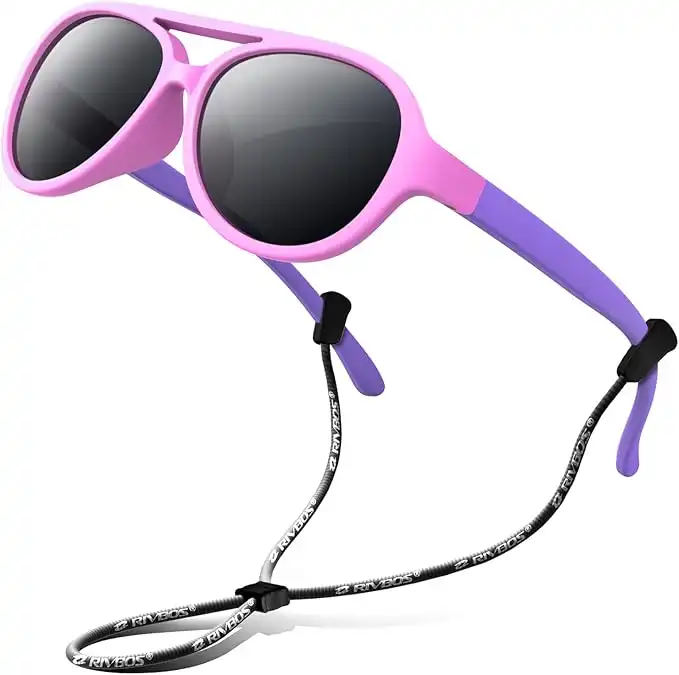 RIVBOS Kids Sunglasses Polarized UV Protection Flexible Rubber Glasses Shades with Strap for Boys Girls RBK004, W Blue, Medium