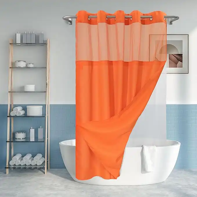 amazon.aeRiver Dream No Hooks Needed Shower Curtain with Snap-in PEVA Liner Set - Hotel Style with See Through Top Window, Machine Washable & Water Repellent, Orange, 71x74