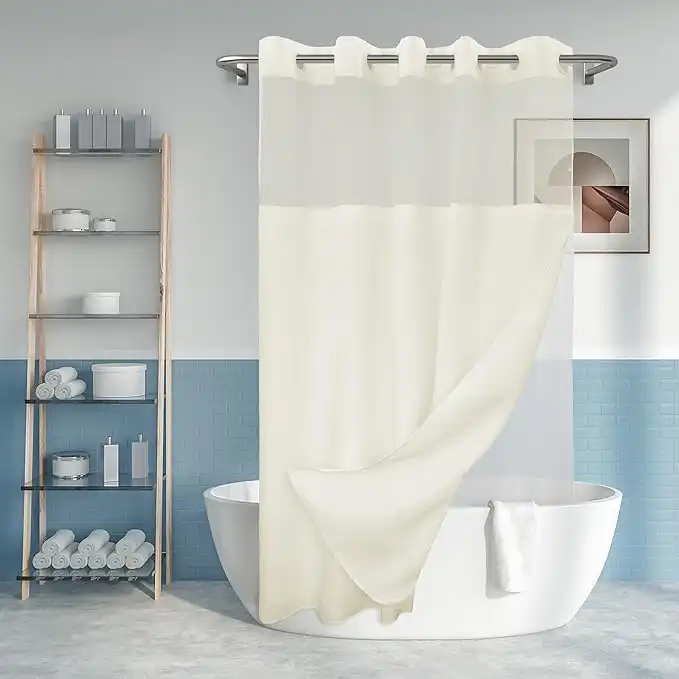 amazon.aeRiver Dream No Hooks Needed Shower Curtain with Snap-in PEVA Liner Set - Hotel Style with See Through Top Window, Machine Washable & Water Repellent, Sand, 71x74