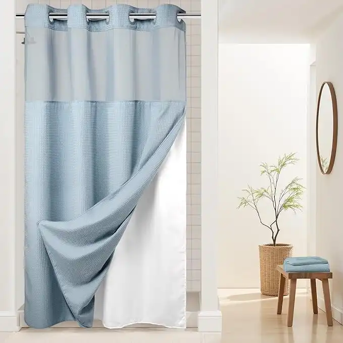 River Dream No Hooks Required Dotted Waffle Weave Shower Curtain with Snap in Liner -Stall 54W x 80H,Hotel Grade,Spa Like Bath Curtain,Blue — Price History & Tracker | DeserTracker
