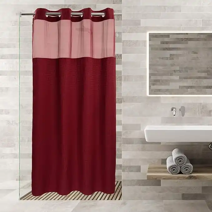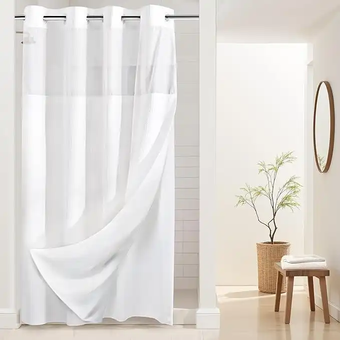 River Dream No Hooks Required Waffle Weave Shower Curtain with Snap in Liner -Stall 54W x 80H,Hotel Grade,Spa Like Bath Curtain,White