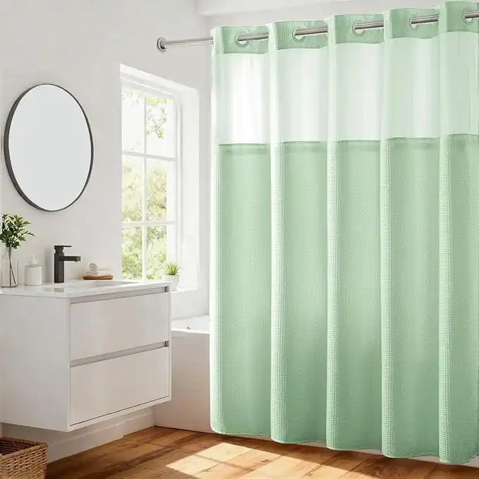 amazon.aeRiver Dream No Hooks Required Waffle Weave Shower Curtain with Snap in Liner - 71W x 74H,Hotel Grade,Spa Like Bath Curtain,Green Light
