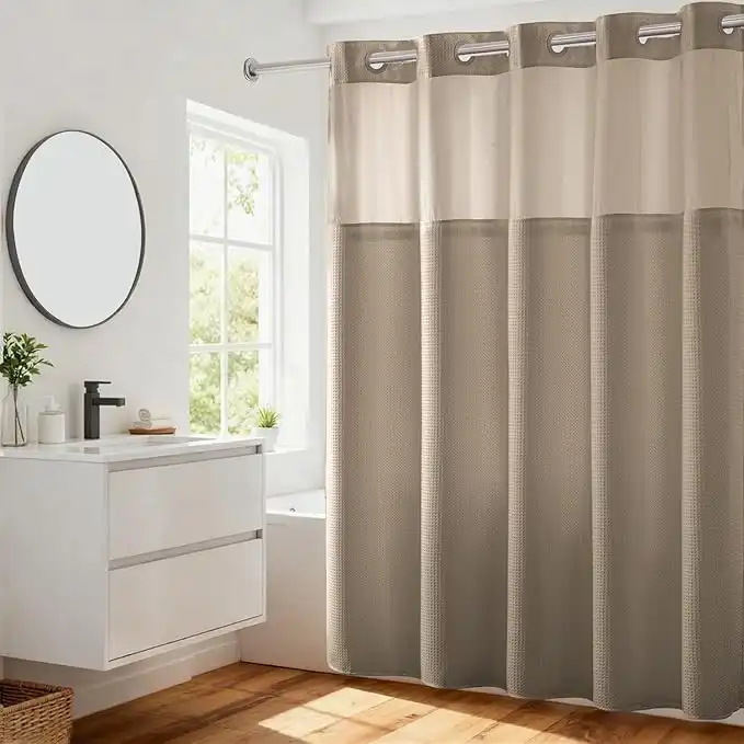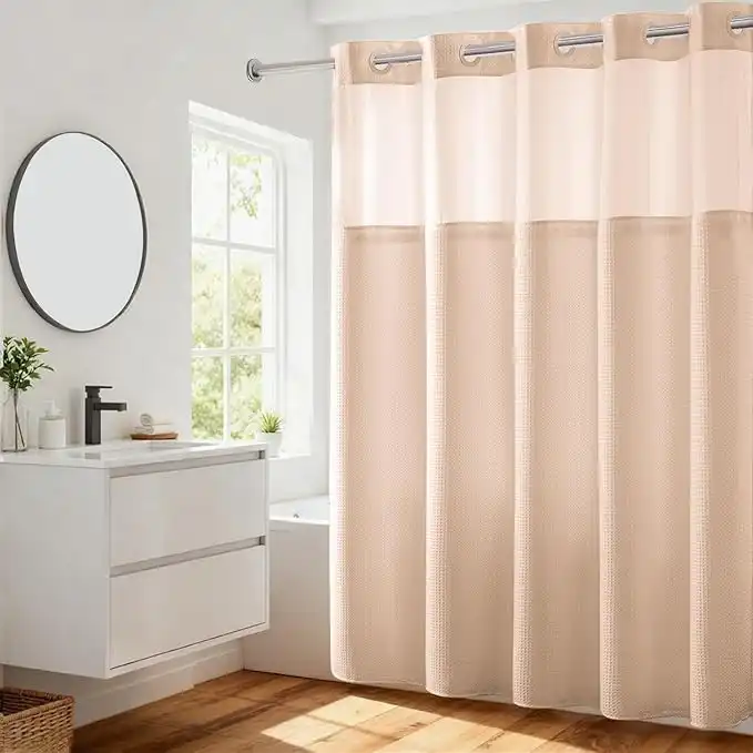 amazon.aeRiver Dream No Hooks Required Waffle Weave Shower Curtain with Snap in Liner - 71W x 74H,Hotel Grade,Spa Like Bath Curtain,Cream