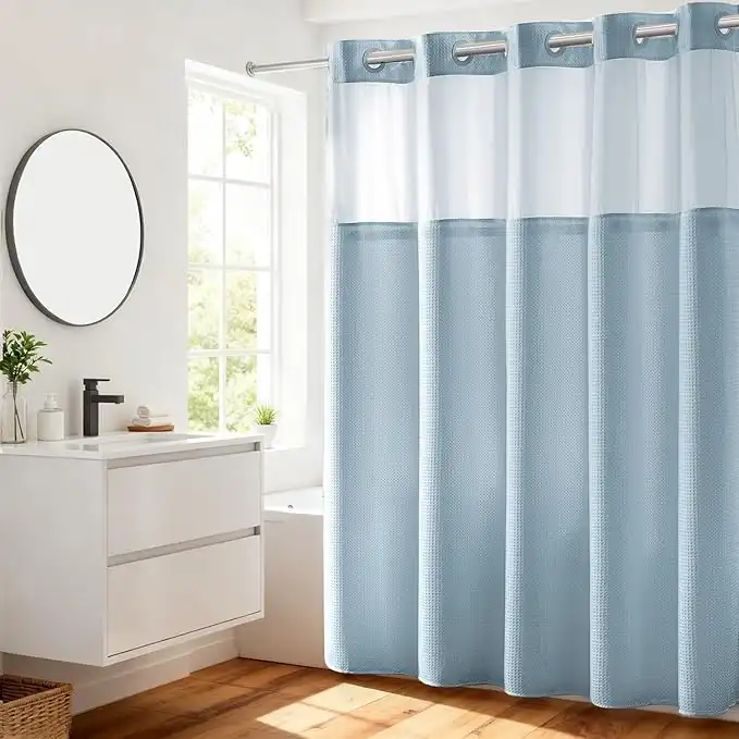 amazon.aeRiver Dream No Hooks Required Waffle Weave Shower Curtain with Snap in Liner - 71W x 74H,Hotel Grade,Spa Like Bath Curtain,Blue